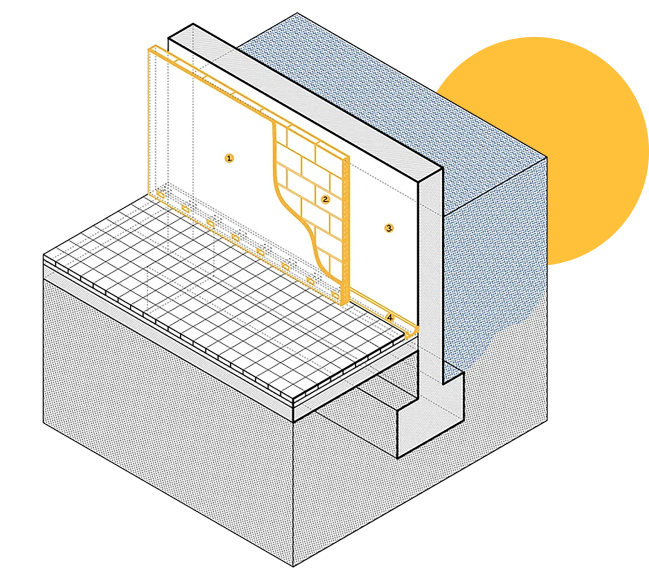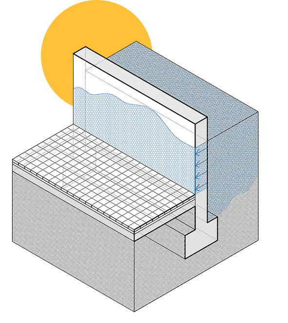 Problema: La humitat i l’aigua del terreny es filtren a través del mur de soterrani i provoquen humitats en el mur. No es pot accedir a la cara del mur amb contacte amb el terreny