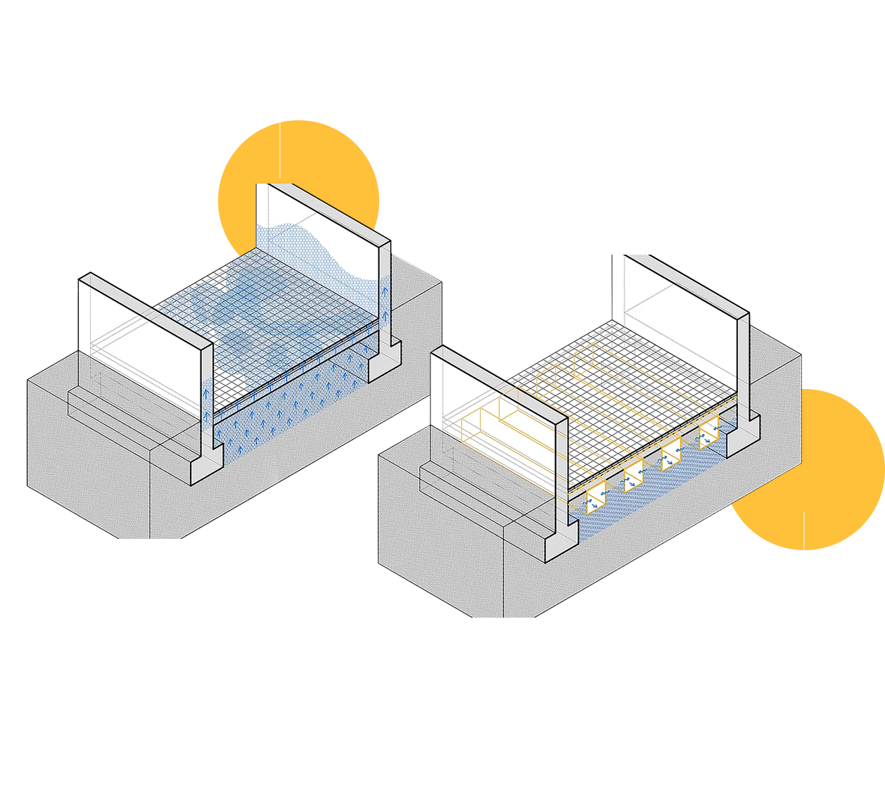 Creem sistemes de ventilació creuada no forçada per assegurar una correcta circulació d’aire a través del subsòl. Així facilitem l’evacuació d’humitat acumulada cap a l’exterior.